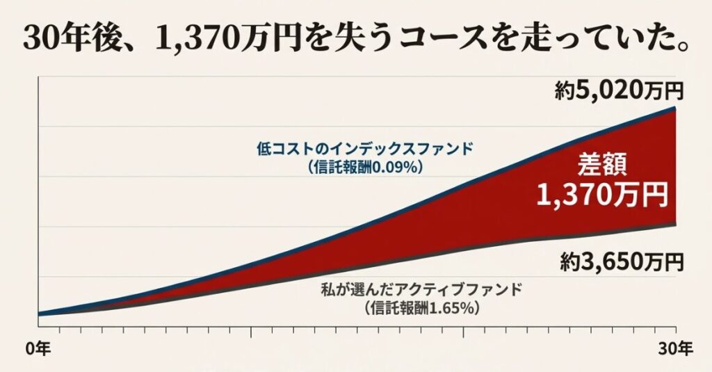 プロの73%がインデックスに負ける。理由はコスト。手数料1%の差が、30年後に290万円の差を生む。