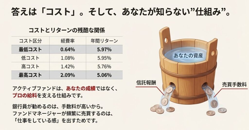 アクティブファンドは、あなたの成績ではなく、プロの給料を支える仕組みだ。
