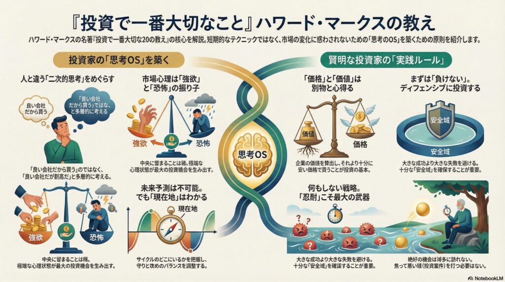 この記事は、ハワード・マークスの『投資で一番大切な20の教え』を、何度でも振り返って学び直すためのガイドです。