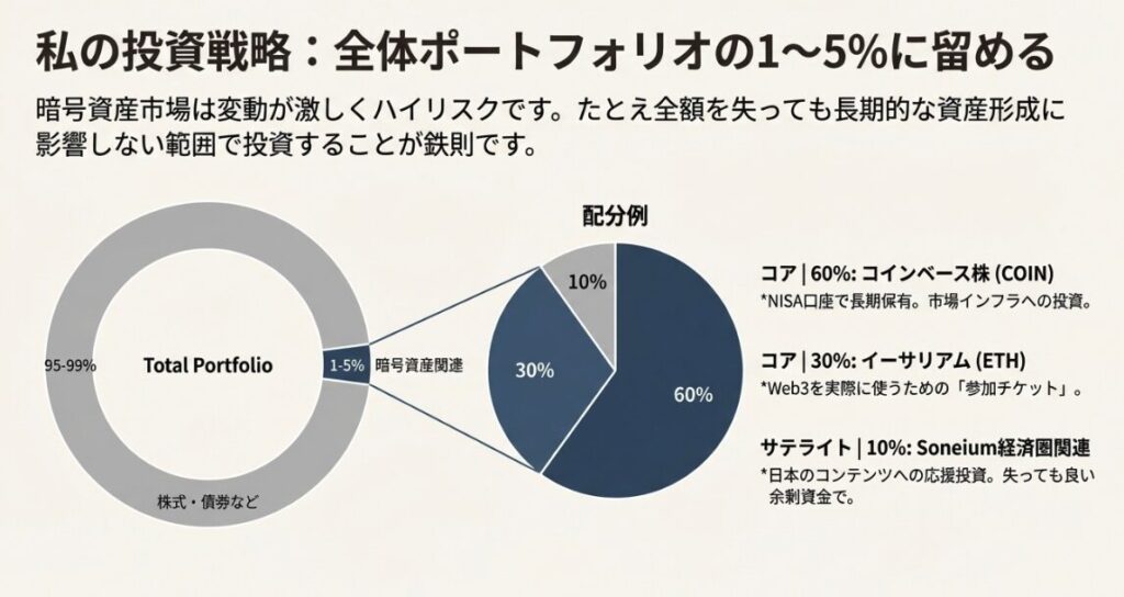 重要な前提:NFT/暗号資産関連への投資は、全体ポートフォリオの1〜5%に留めています。