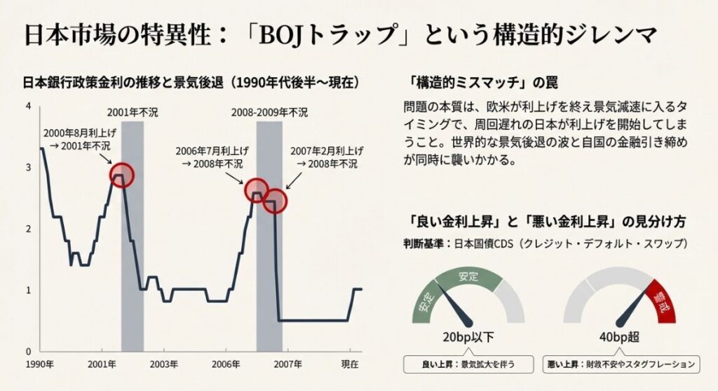 米国が利上げを行うと、ドル高・他国通貨安が進行します。日本や欧州は、自国の景気が冷え込んでいても、通貨防衛のために「遅れて利上げ」を強いられる構造になっています。