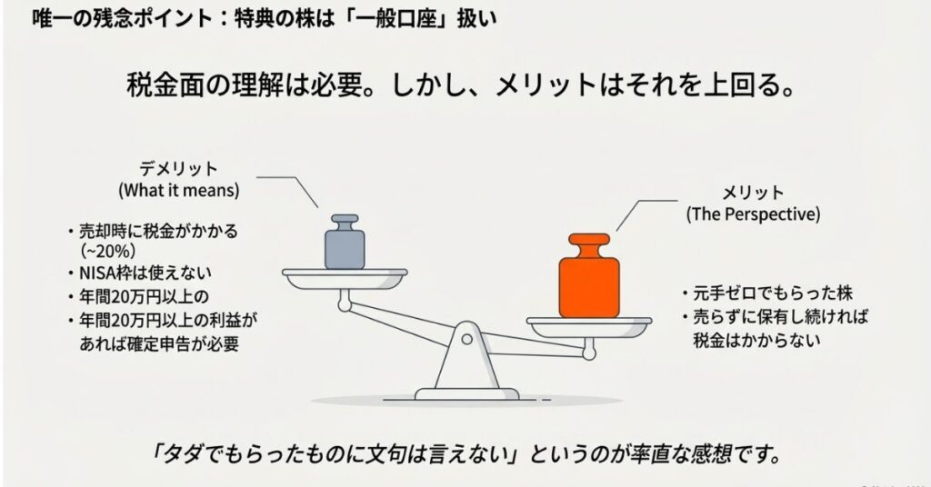 - キャンペーン株は一般口座扱いのため、売却時に税金がかかります