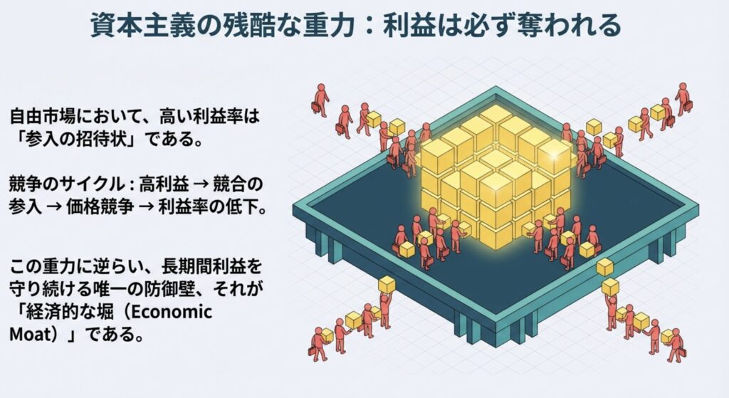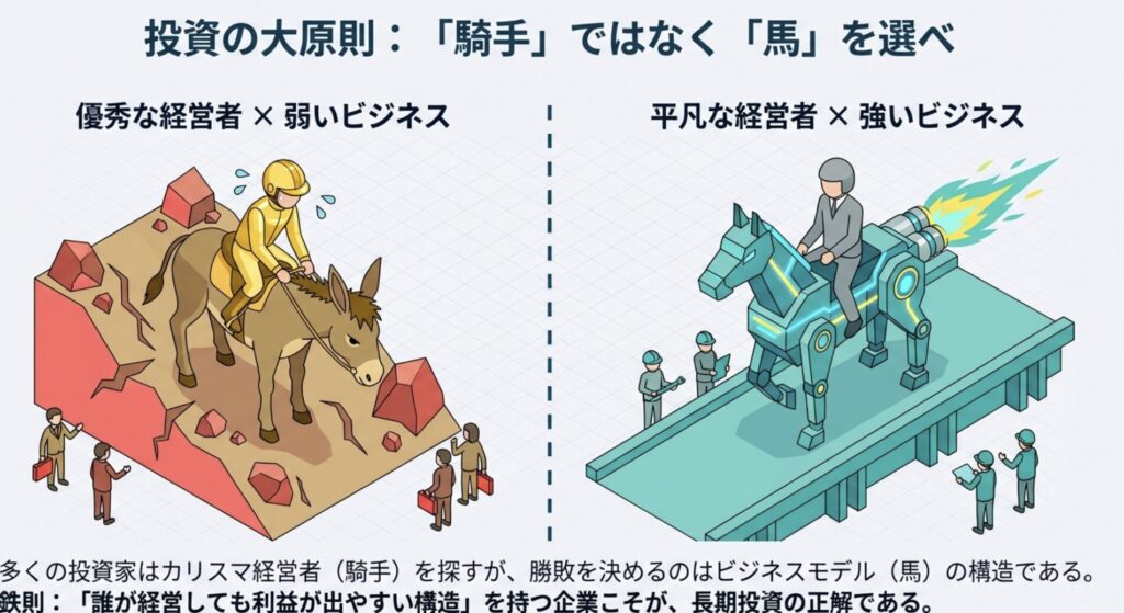 構造が努力を負かす。努力(経営陣)に期待するのではなく、構造(堀)を信じなさい。それが、千年続く投資の公理です。