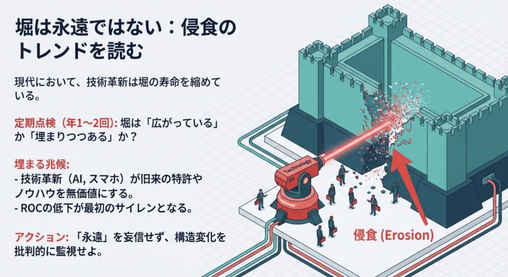 特に現代は、技術の進化スピードが速い時代です。「10年前は堅固だった堀」が、今も残っているとは限りません。